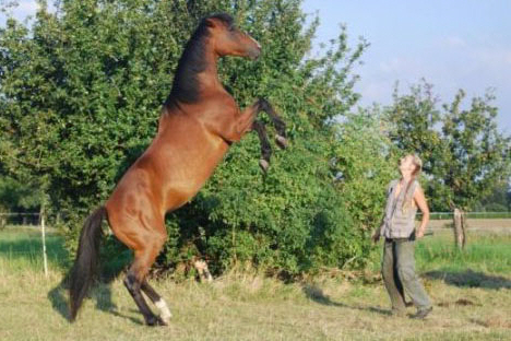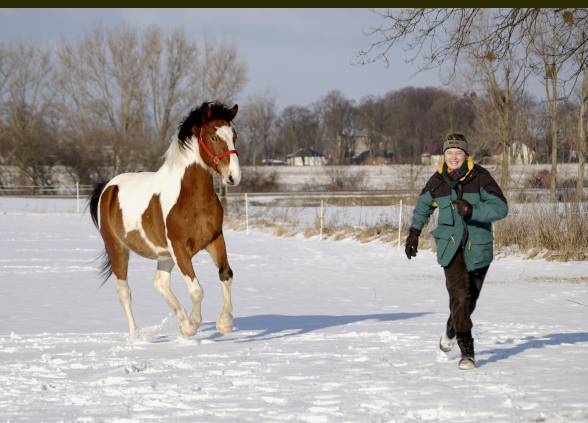 Al Karim, der Göttliche. Er ist der charmante Clown, Freund der Stuten und hoch talentiertes Reit- und Zirkuspferd. Im Oktober 2004 haben wir ihn 6jährig von der Schweizer Grenze "entführt". So muss es ihm vorgekommen sein, als wir ihn nach 5 1/2 Jahren auf demselben Hof, in eine schwankende Kiste packten und nach 15 Stunden Fahrt wieder auspackten. Er hat ein Jahr gebraucht, um sich von dem Schock zu erholen. Siebenjährig eingeritten, ist auch er jetzt ein tolles Lehrpferd. Ob am Boden oder unter dem Sattel. Er teilt sich mit seinem Kumpel Flantan die Rolle des Leitwallachs und zeigt beim Spielen sein Talent für die Hohe Schule. Geboren ist der Hübsche übrigens hier: www.bio-stutenmilch.de