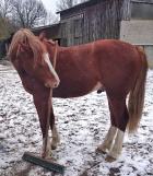 Flantan, der im Winter 2005 hier für 4 Monate als Ausbildungspferd ankam und nun das Privileg genießt, Pensionspferd zu sein. Frecher Bengel, feines Pony, hat fast immer das letzte Wort und muss grundsätzlich alles darauf untersuchen, ob es als Nahrung taugt. Er kann wunderbar fein und furchtbar dickschädelig sein. Mit seinem Kumpel Karim teilt er sich die Position des Leitwallachs und zeigt regelmäßig, wie pony sich verrenken kann, um den Kumpel zu kneifen und selbst nichts abzubekommen, um dann im schönsten spanischen Trabe über die Weide zu schweben.