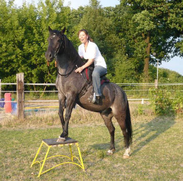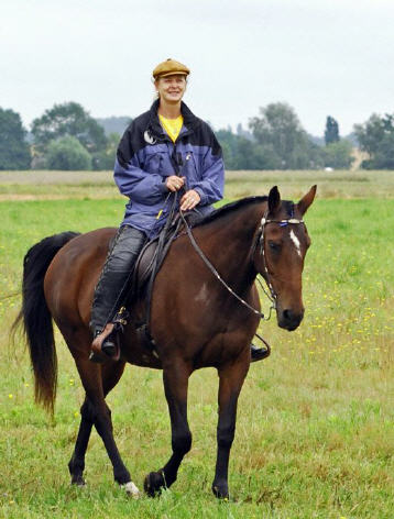 Die Grande Dame des SONNENHOFes ist am 02. Juli 2009 gegangen. Sie begleitete mich 13 Jahre und war mein ganz persönlicher Spiegel. Sie war der Grund, weshalb es den SONNENHOF gibt. Sie war Ruhepol und unspektakuläre Leitstute. Und obwohl man ihr die 23 Jahre ihres Lebens schon manchmal ansah, war sie bis wenige Wochen vor ihrem Tod noch gern flott unterwegs. Auf dem Platz trug sie geduldig kleine Kinder, passte auf ängstliche Reiter auf, lehrte im Unterricht die eigenen Gedanken und den Körper zu ordnen und zeigte im Coaching als Co-Trainer auf sanfte Art die Stärken und Schwächen ihres Gegenübers. Im Gelände überprüfte sie hingegen jeden Reiter auf Herz und Hand. Bis zuletzt, bereits blind, behielt sie ihre beeindruckende Ausstrahlung. Gemeinsam mit vielen ihrer Schüler bin ich ihr dankbar für all das, was ich von ihr lernen durfte.